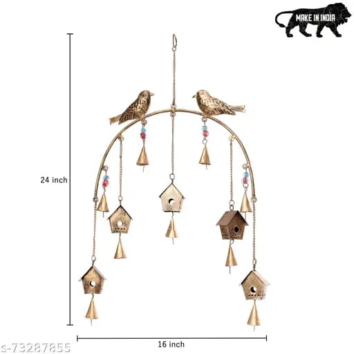 Bird & Bell Hanging Wall Decor – Handmade Vintage Metal Art